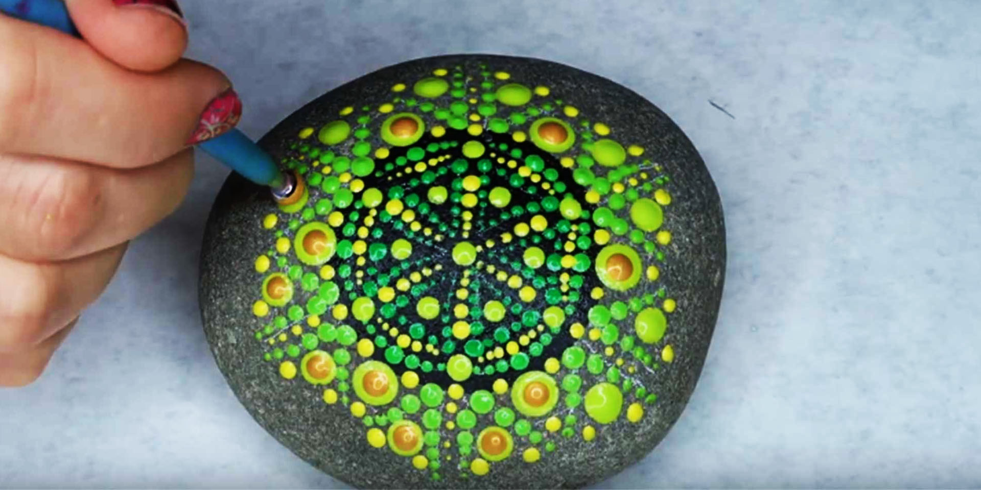 Learn how to paint mandala rocks with our step-by-step course for only $9.99. (Save 75% off!). Use the coupon code HIGHSPEED9 on checkout at Udemy.com. Click here to automatically apply the coupon: https://www.udemy.com/draft/2492278/?… Relax with watching this mandala rock painting from start to finish timelapse video with music. This pattern uses a spinning design…